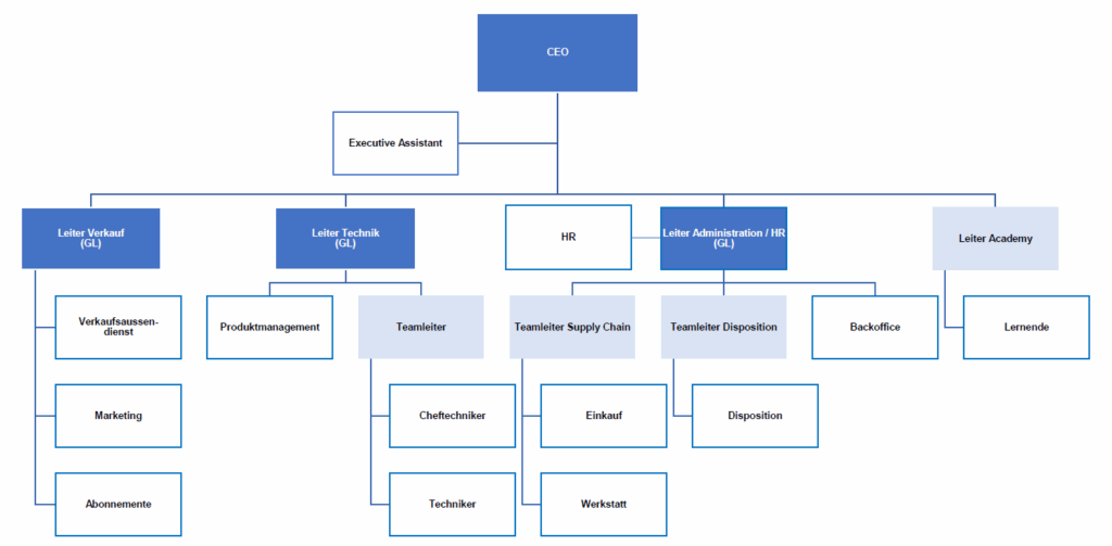 Im gleichen Zuge wurde die Organisation der Kibernetik AG überarbeitet. Ziel dabei war, die Führungsverantwortungen klarer zu regeln, Entwicklungsperspektiven zu schaffen und die tägliche Zusammenarbeit zu verbessern. Mit diesen Ansätzen konnte nun eine schlanke und moderne Struktur mit einer zusätzlichen Teamleiter-Ebene geschaffen und das Organigramm wie folgt aufgebaut werden: