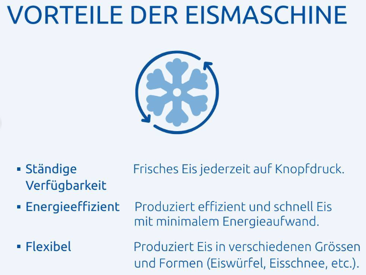 Die Eismaschinen der Kibernetik AG können jegliche Eissorten herstellen – von Micro-Cube Feineis über Nuggeteis bis hin zu Flockeneis.